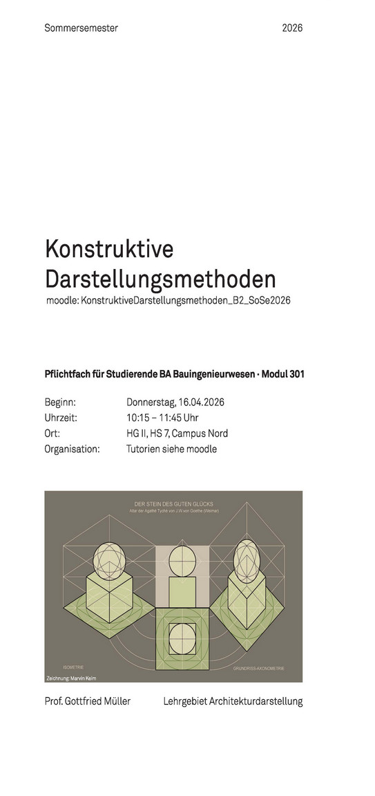 Die konstruktiven Darstellungsmethoden führen in die Grundlagen der darstellenden Geometrie ein und damit in die Beziehung zwischen dreidimensionalem Objekt und zweidimensionaler Projektionsebene.